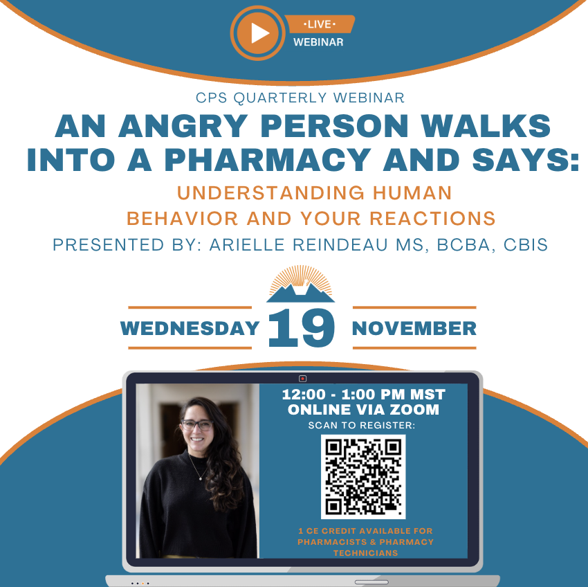 Speakers: Emily Zadvorny, PharmD, BCPS, Executive Director of Colorado Pharmacists Society (CPS), Sarah Bow, PharmD, Pharmacy Practice Advancement Lead